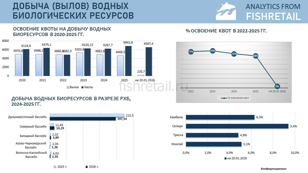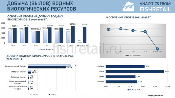 Рынок вошёл в 2026 год в состоянии структурного ценового сдвига. Розница, получившая в 2025 году сигнал о возможности безнаказанно повышать маржу (итог +17%), продолжает эту политику. Теперь её не останавливают даже благоприятные условия на опте. Глубокое падение добычи лишь укрепляет уверенность сетей в правильности их стратегии. Без жёстких административных мер по ограничению торговых наценок (а не только мониторинга) и без реальных шагов по увеличению вылова, инфляция на рыбу в 2026 году может превзойти шокирующие показатели 2025-го.