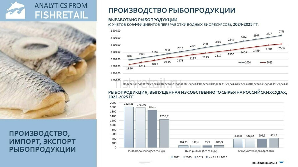 Российский рыбный рынок подошел к концу осени в состоянии усиливающегося структурного кризиса. Глубокое падение добычи создает объективные предпосылки для роста цен, которые, однако, в рознице пока сдерживаются административным давлением и разнонаправленной региональной динамикой. Аномальное поведение цен в ЦФО требует отдельного внимания регулятора.