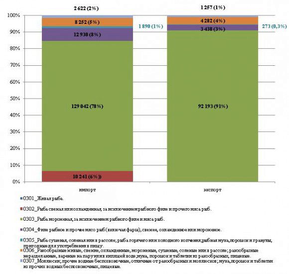 Россия по итогам мая 2011 года импортировала 165,1 тыс. тонн рыбы и морепродуктов. Тогда как в мае 2010 года было ввезено на 26% меньше (а именно 130,8 тыс. тонн), в мае 2009 года – на 12% меньше (148,0 тыс. тонн). Естественно основная доля от этого показателя принадлежит замороженной рыбе – 78%. Если рассматривать импорт согласно странам, в которых рыба и морепродукты были выловлены, то порядка 96,6 тыс. тонн (59%) будет иметь российское происхождение. То есть продукция была выловлена у нас, а отправлена на переработку в другие страны, после чего в качестве импорта возвратилась в Россию. Следом согласно стране происхождения идет Норвегия – 26,7 тыс. тонн (16%), и Китай – 8,4 тыс. тонн (5%). Основными импортируемыми видами рыб стала: сельдь (замороженная) – 52,1 тыс. тонн (или 32%), тогда как в прошлом году этот показатель составлял всего 10,5 тыс. тонн; и замороженный минтай – 25,1 тыс. тонн (или 15%), прошлогодний показатель составлял 17,2 тыс. тонн. Напомним, что в текущем году улов сельди вырос относительно прошлогоднего в 4 раза, поэтому на переработку в другие страны соответственно отправилось больше, чем в прошлом году. Отсюда и такой прирост импортной продукции.
