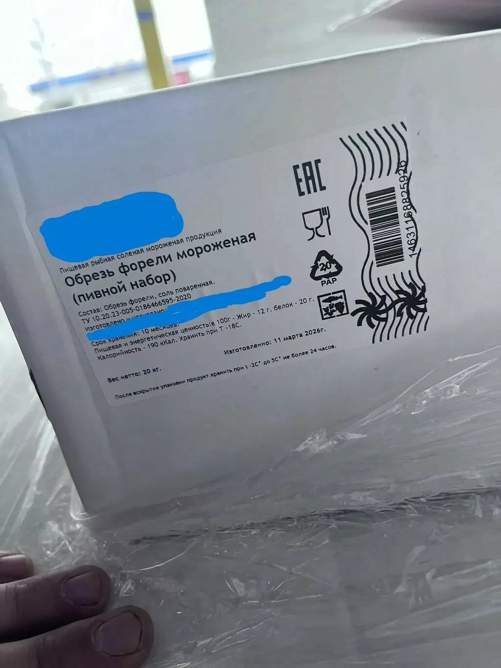 Обрезь форели (рёберная) с/м в в/у по 500 грамм в коробках по 20 кг, срок годности 10 месяцев . Состав: Обрезь форели, соль.