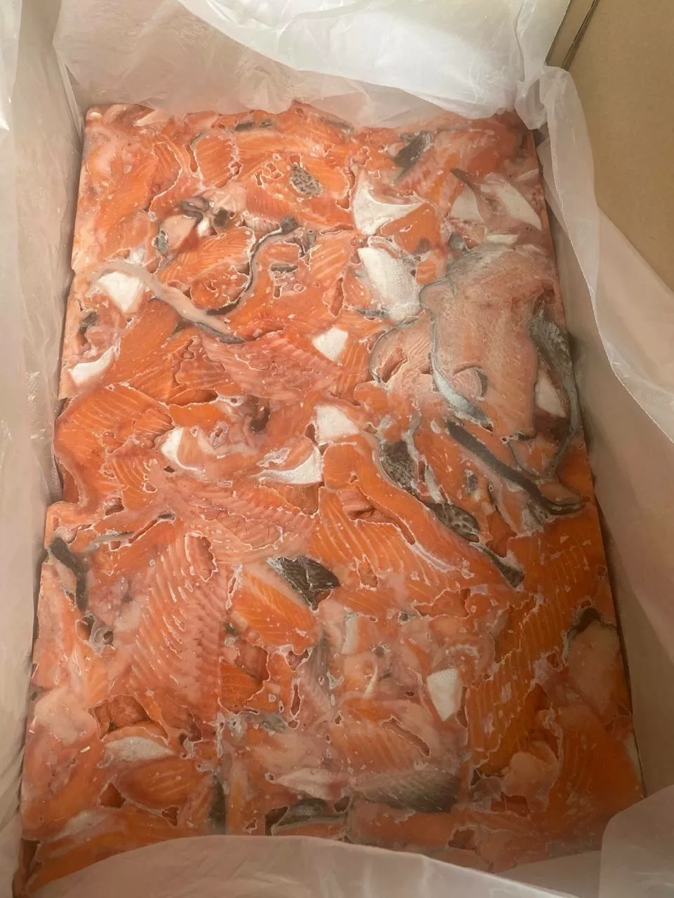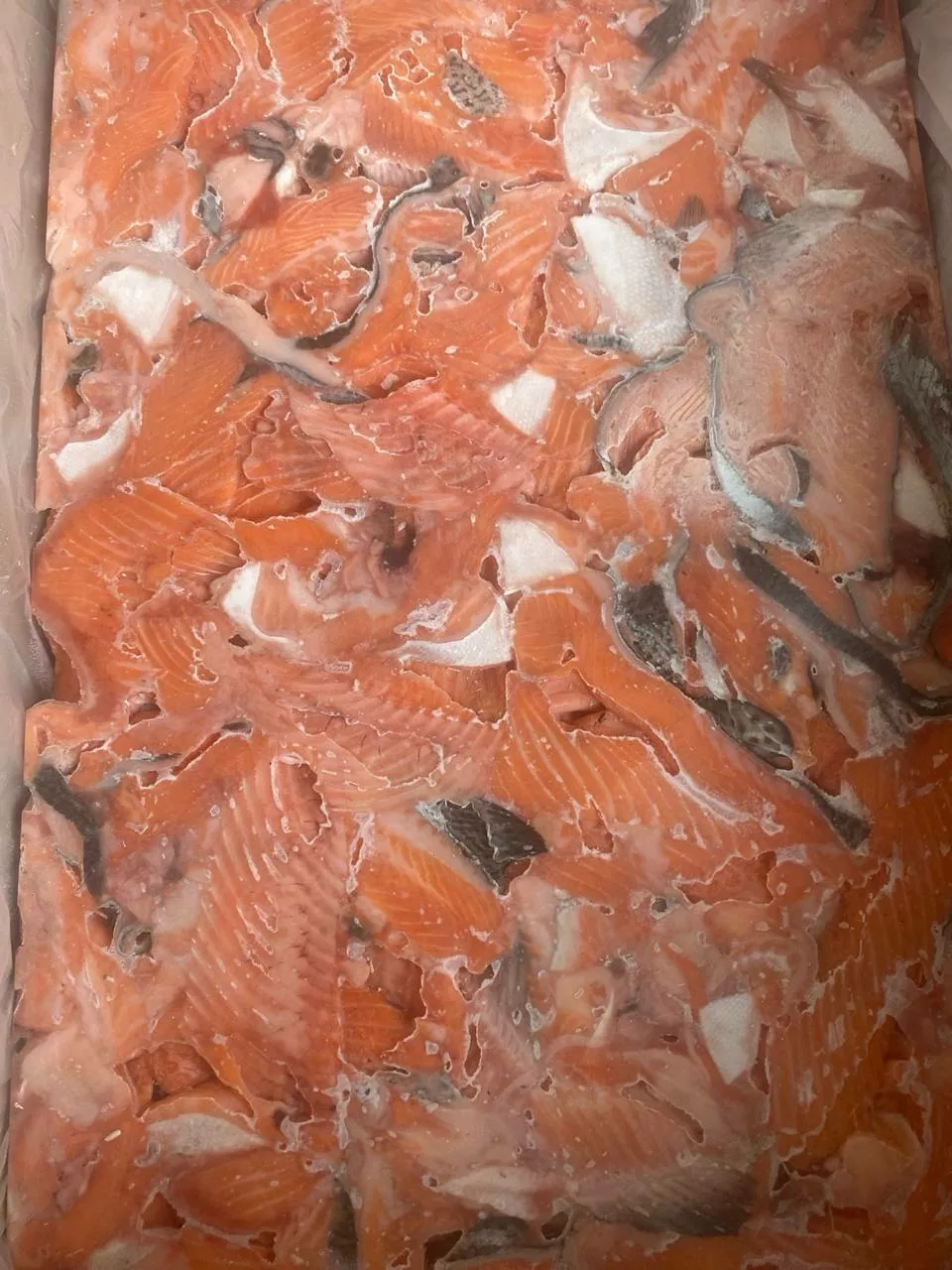 Обрезь Лосося с/м (блоки, упакованные в коробку), срок годности 9 месяцев