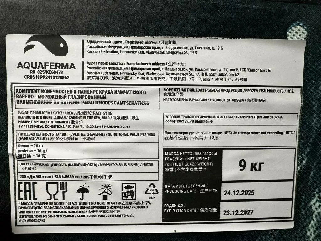 ✈️ Оперативно доставим краба по всей России и в страны ЕАЭС.
