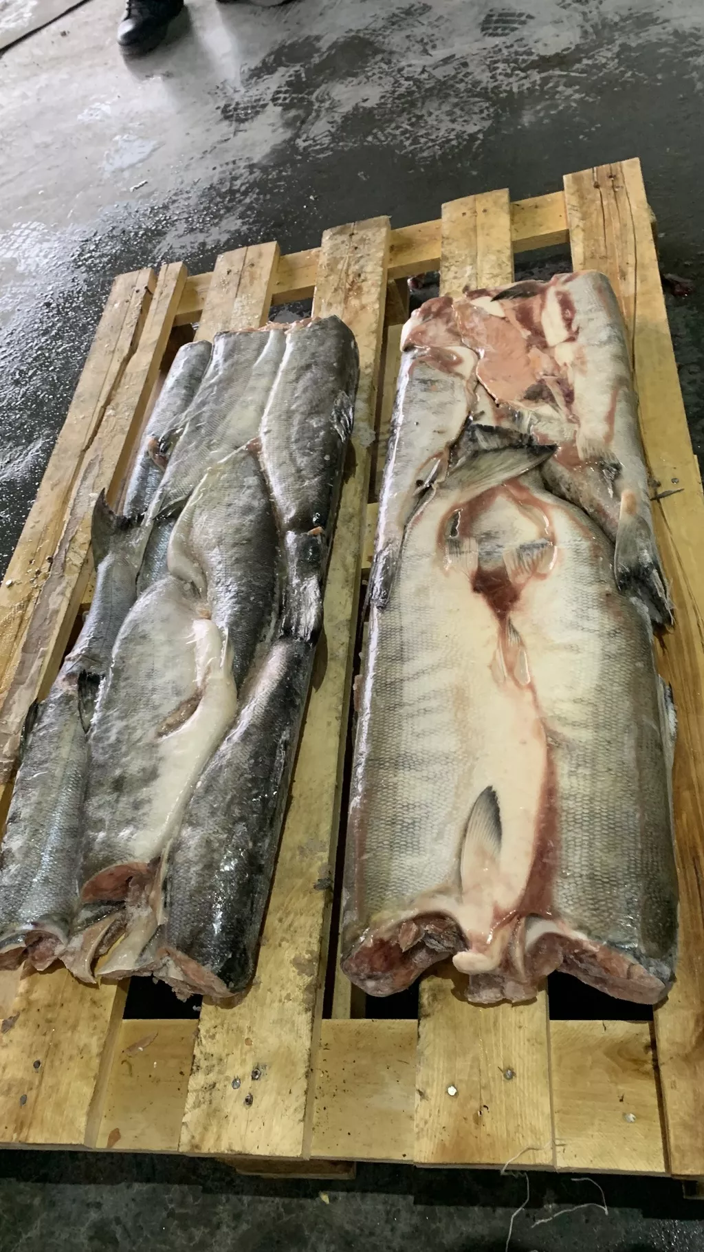 Обрезь форели, весовая (палетная) упаковка.