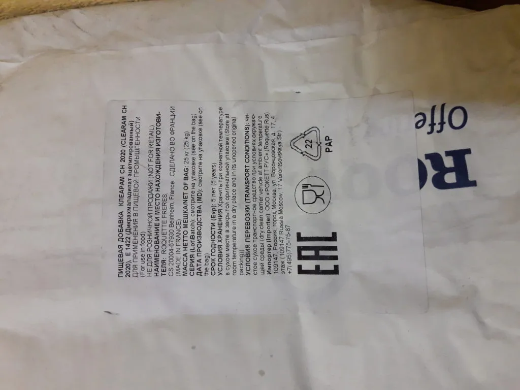 Объявление: Продам: крахмал Clearam СН 2020 (Е1422) в Москве