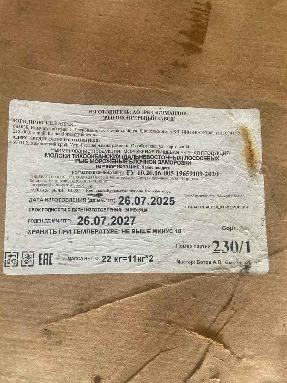 МОЛОКИ (лос) нерка 1/22, АО РКЗ "Командор", КАМ-КУР. 946 кг 265