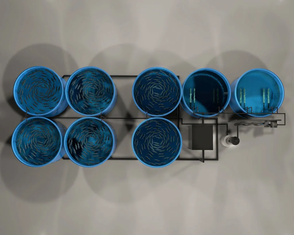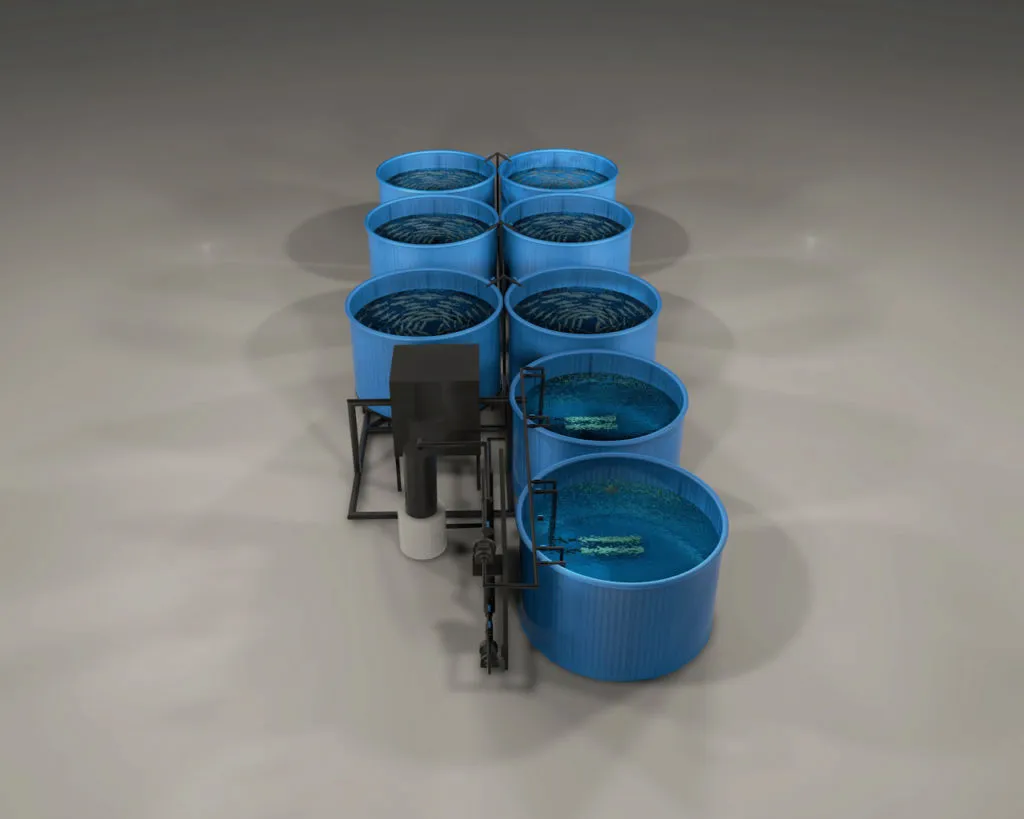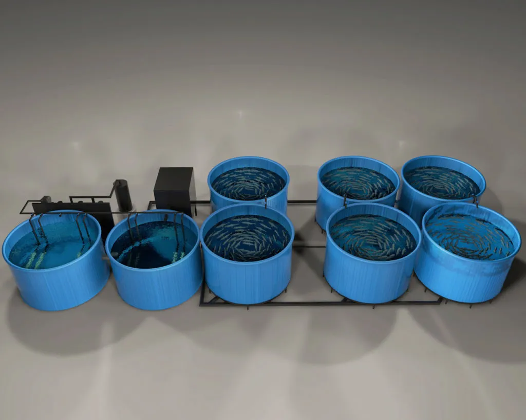 Оборудование представляет собой рыбоводную установку интенсивного типа по бассейновому выращиванию рыбы (мальковый блок). Производитель установки – компания «Аквафермер».