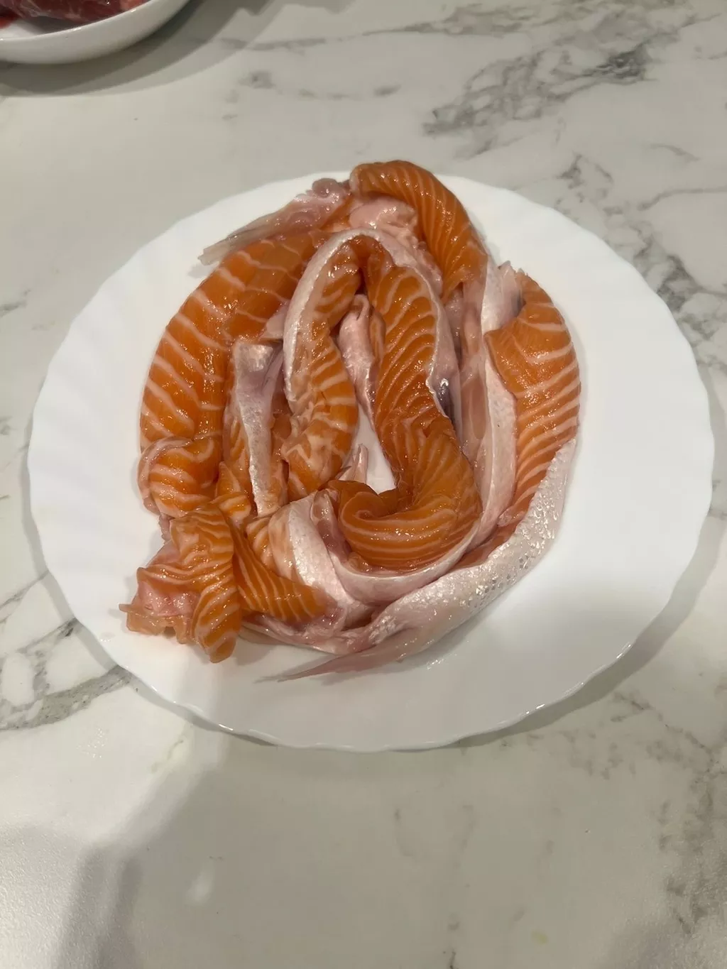 Так же есть слайсы семги без кожи и костей слабо соли, срезы с брюшной части сс, Красная мякоть маленькие кусочки, обрезь семги, головы форели