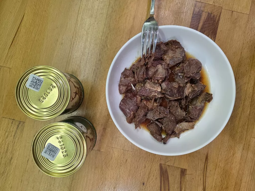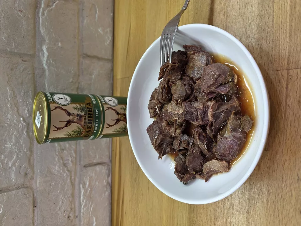 Эта тушёная оленина сделана из северной оленины, Ямало-Ненецкого автономного Оркуга. Готовится по классической рецептуре без ГМО, консервантов и усилителей вкуса. Мясо тушат с луком и специями, чтобы сохранить натуральный вкус и аромат.