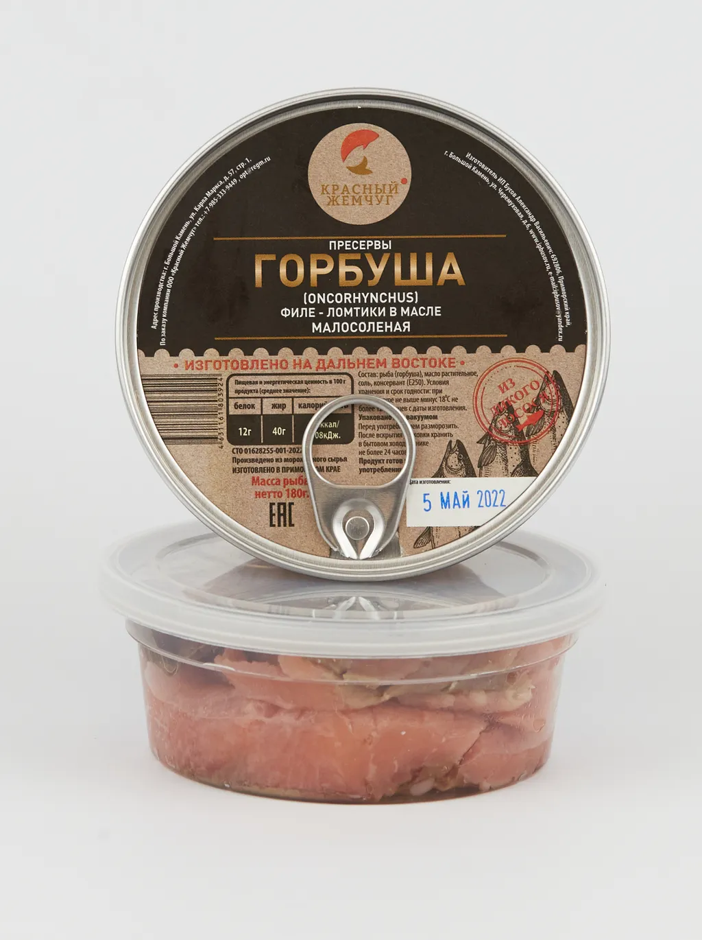 Пресерва из горбуши филе-ломтики в масле (180г) /ИП Бусов А.В. (Приморский край), СТМ Красный Жемчуг