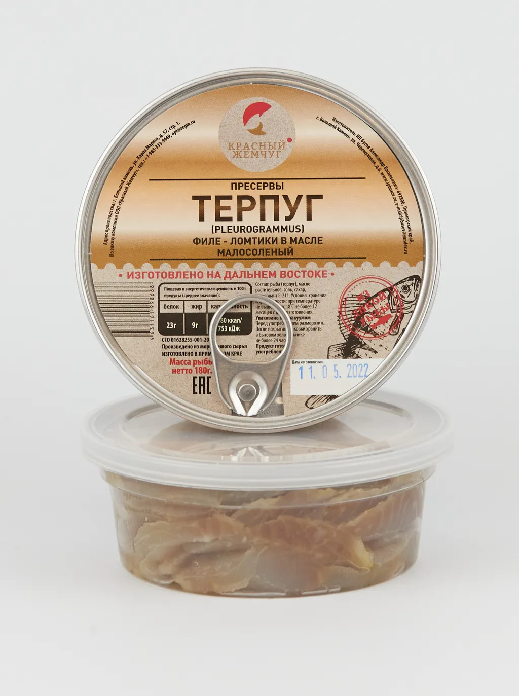Пресерва из терпуга филе-ломтики в масле (180г) /ИП Бусов А.В. (Приморский край), СТМ Красный Жемчуг