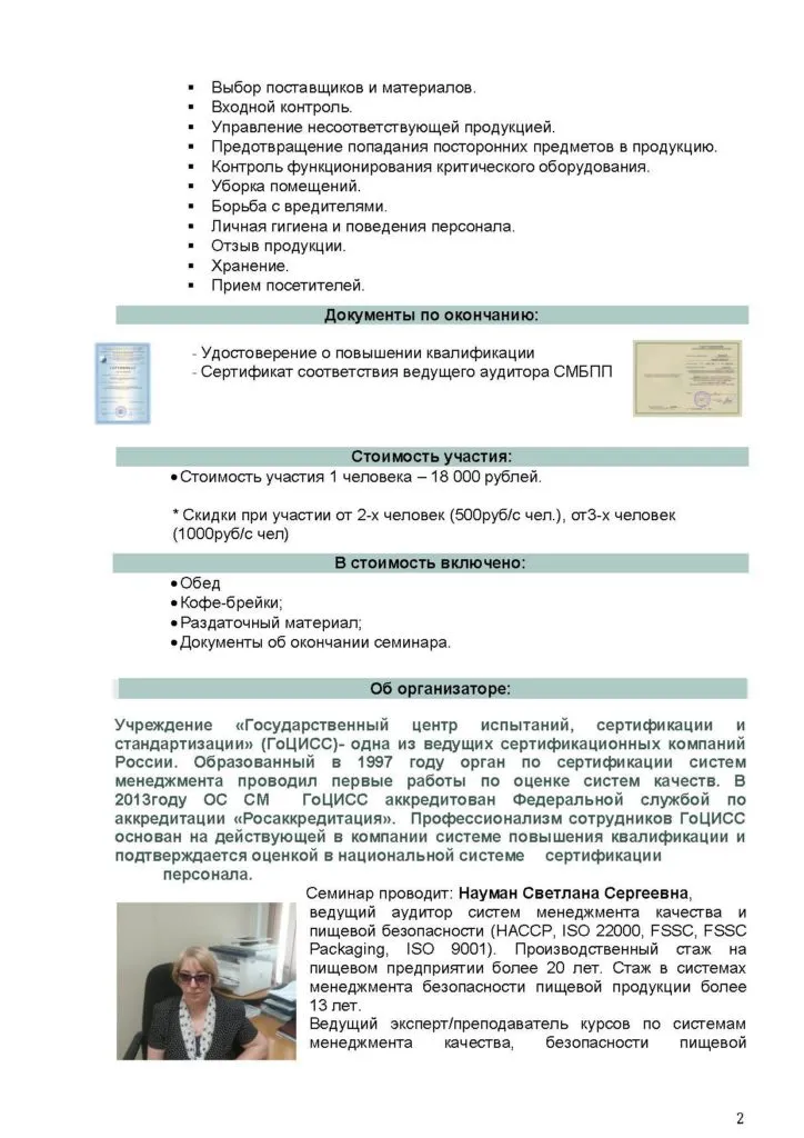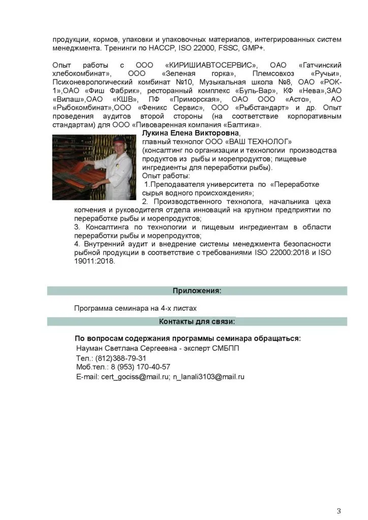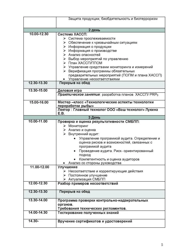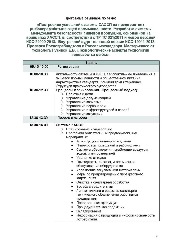 Учреждение «Государственный центр испытаний, сертификации и стандартизации» с 23 по 25 июля проводит семинар-тренинг: «Разработка системы менеджмента безопасности пищевой продукции, основанной на принципах ХАССП, в соответствии с ТР ЕАЭС 040/2016 на рыбоперерабатывающих предприятиях. Требования к упаковке и маркировке. Внутренний аудит. Технологические аспекты технологии переработки рыбы».