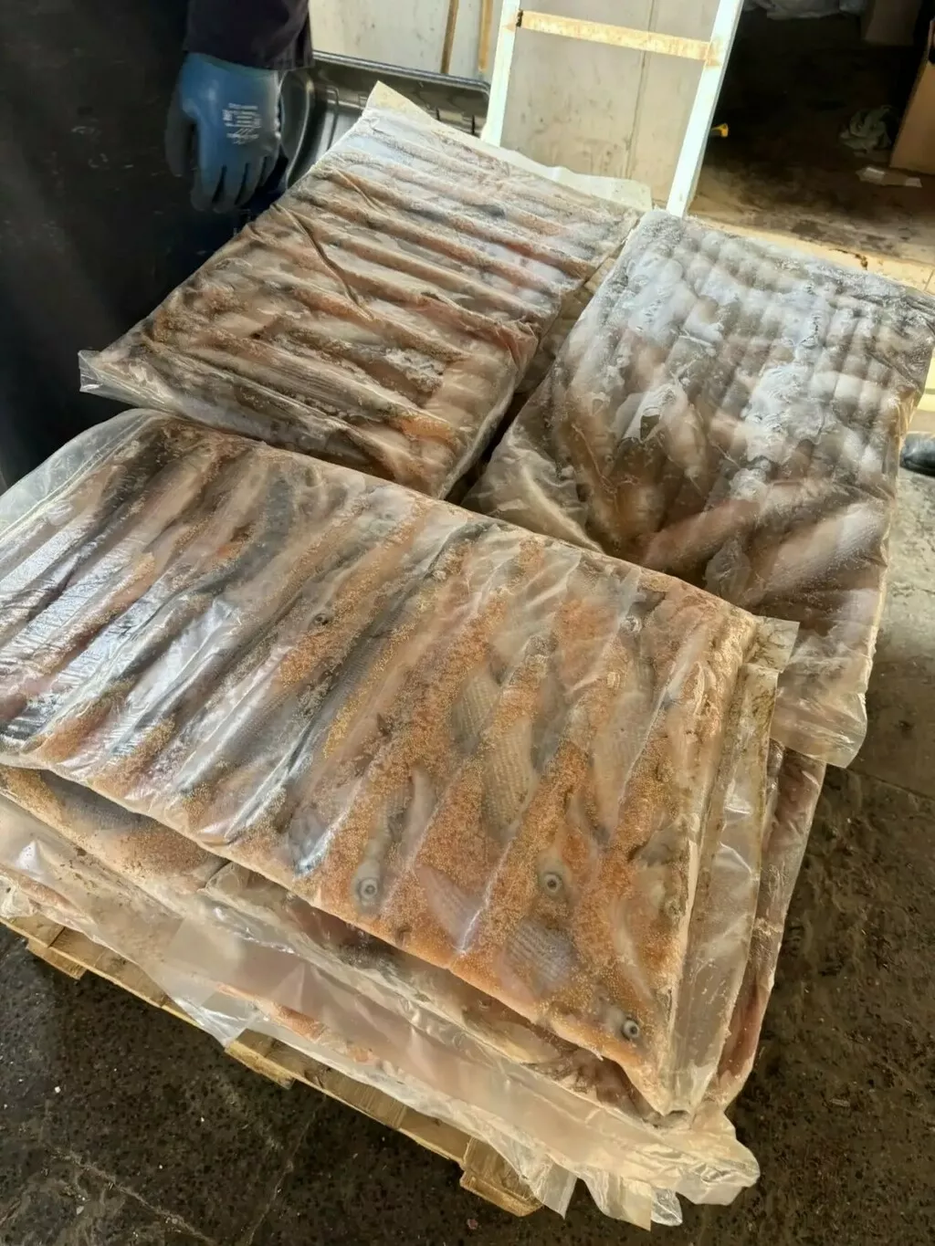 Масса нетто брикета 20 кг Масса брутто брикета 22 кг (с учётом глазури и упаковки) Вылов 2025 года