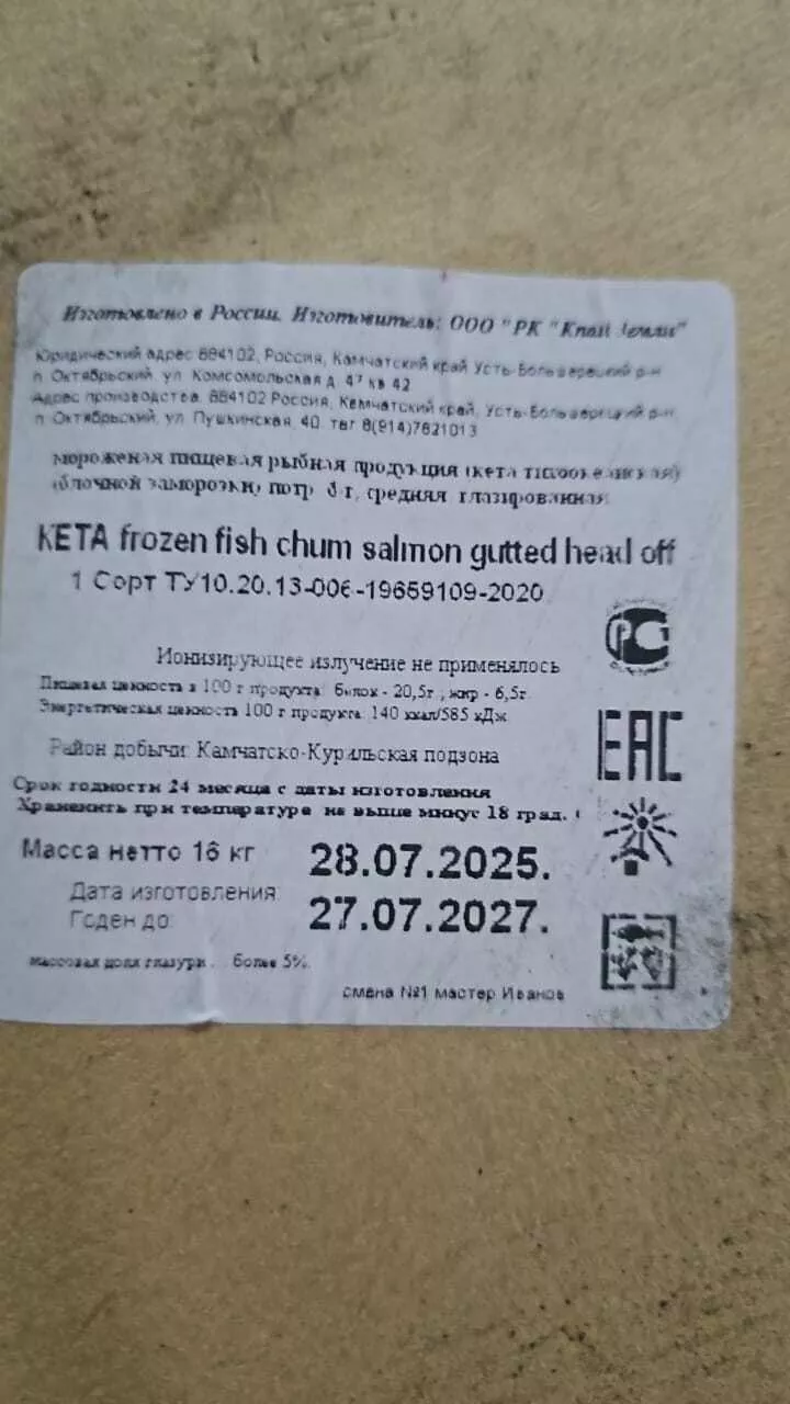 7) Кета ТО (ДВ), ПБГ, УМЗ, мор., изг. ООО "РК "Край Земли", 1/16 – 896 кг