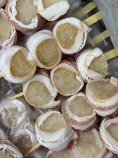 Медальоны гребешка в беконе на шпажке 1/4 кг